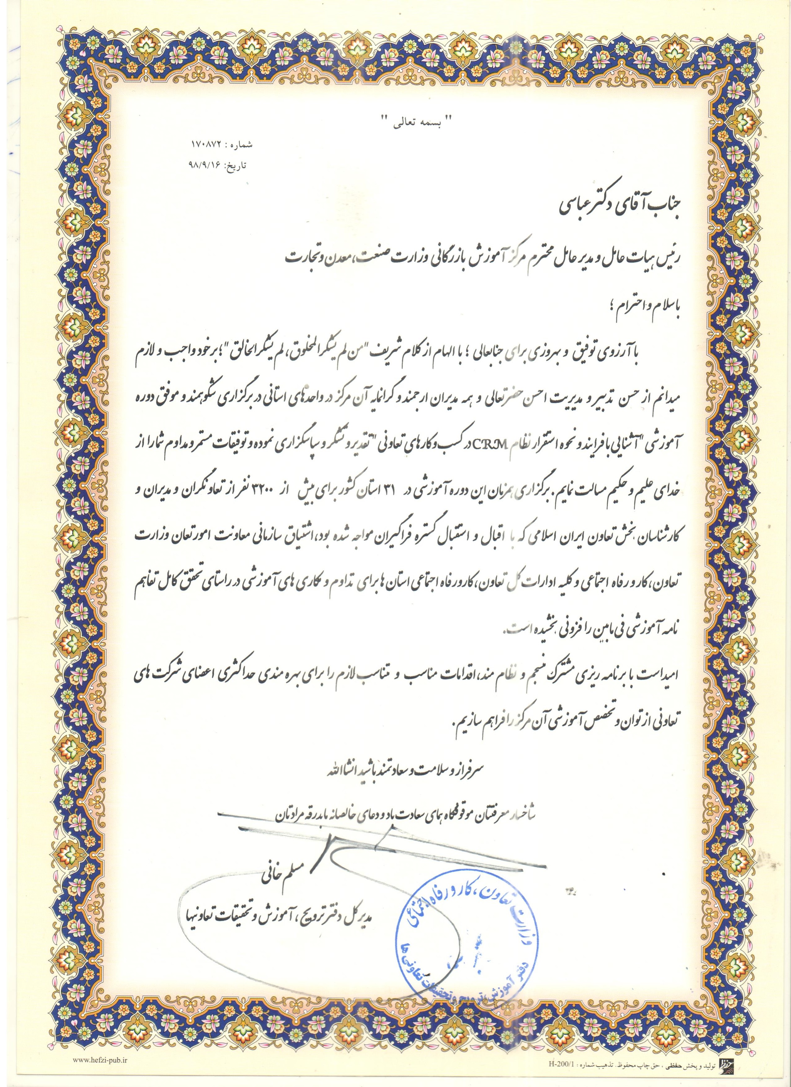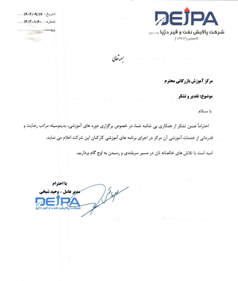 تمامی دورههای مرکز به صورت اختصاصی برای سازمانها، شرکتها و بنگاههای اقتصادی قابل برگزاری است.