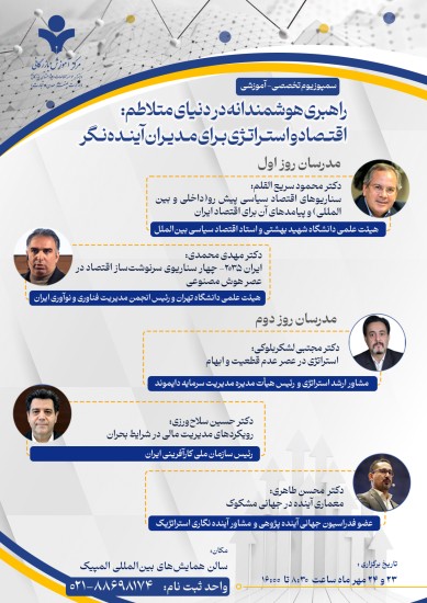 همایش «راهبری هوشمندانه در دنیای متلاطم؛ اقتصاد و استراتژی برای مدیران آیندهنگر» با هدف تبیین چالشها و فرصتهای ناشی از تحولات جهانی و فناوریهای نوین، به مدیران و فعالان اقتصادی کمک میکند تا با شناخت سناریوهای پیشرو، رویکردهای استراتژیک و مهارتهای راهبری لازم را برای تصمیمگیری در شرایط عدم قطعیت و پیچیدگیهای محیطی بهکار گیرند. این همایش فرصتی است برای بهرهمندی از دیدگاههای اندیشمندان برجسته کشور و ایجاد تعامل میان مدیران، کارشناسان و پژوهشگران حوزه اقتصاد و مدیریت.